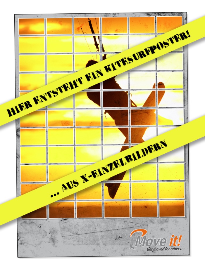 Aus allen eingesandten Bildern wird dann ein gemeinsames großes Kitesurf-Poster hergestellt. Dieses Poster bekommen alle, die etwas gespendet haben, kostenlos als kleines Dankeschön per Post zugeschickt (wenn jemand allerdings nicht spenden kann oder möchte, dann soll er nicht vom Posterprojekt ausgeschlossen werden. Man kann trotzdem ein Bild schicken. „Move it!“ bittet dann um die Zusendung von Briefmarken in Höhe von 2,00 €, um die Kosten zu decken). Die Spenden kommen zu 100% in Ghana an: Eine Druckerei druckt das Poster kostenlos in beliebiger Größe und Auflagenhöhe, ein Designer arbeitet für ein Dankeschön und ewigkite.de übernimmt die Versand- und Portokosten.