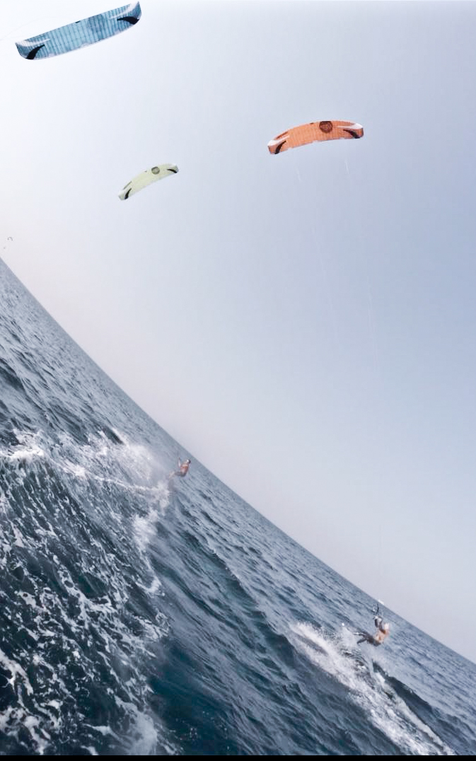 Der Windbereich, in dem der 21iger zu nutzen ist, ist wirklich enorm. Bedient man den Adjuster, den man übrigens punktgenau auf den gewünschten Druck einstellen kann, dann kann man den Kite auch noch fliegen, wenn andere ihren 15 und sogar 12er auspacken (ja, ich weiß, es gibt auch bei Tubekites unterschiedliche 15er und 12er). Nett war auch eine gemeinsame Session mit Freunden: Speed 5 21,18 und 15.